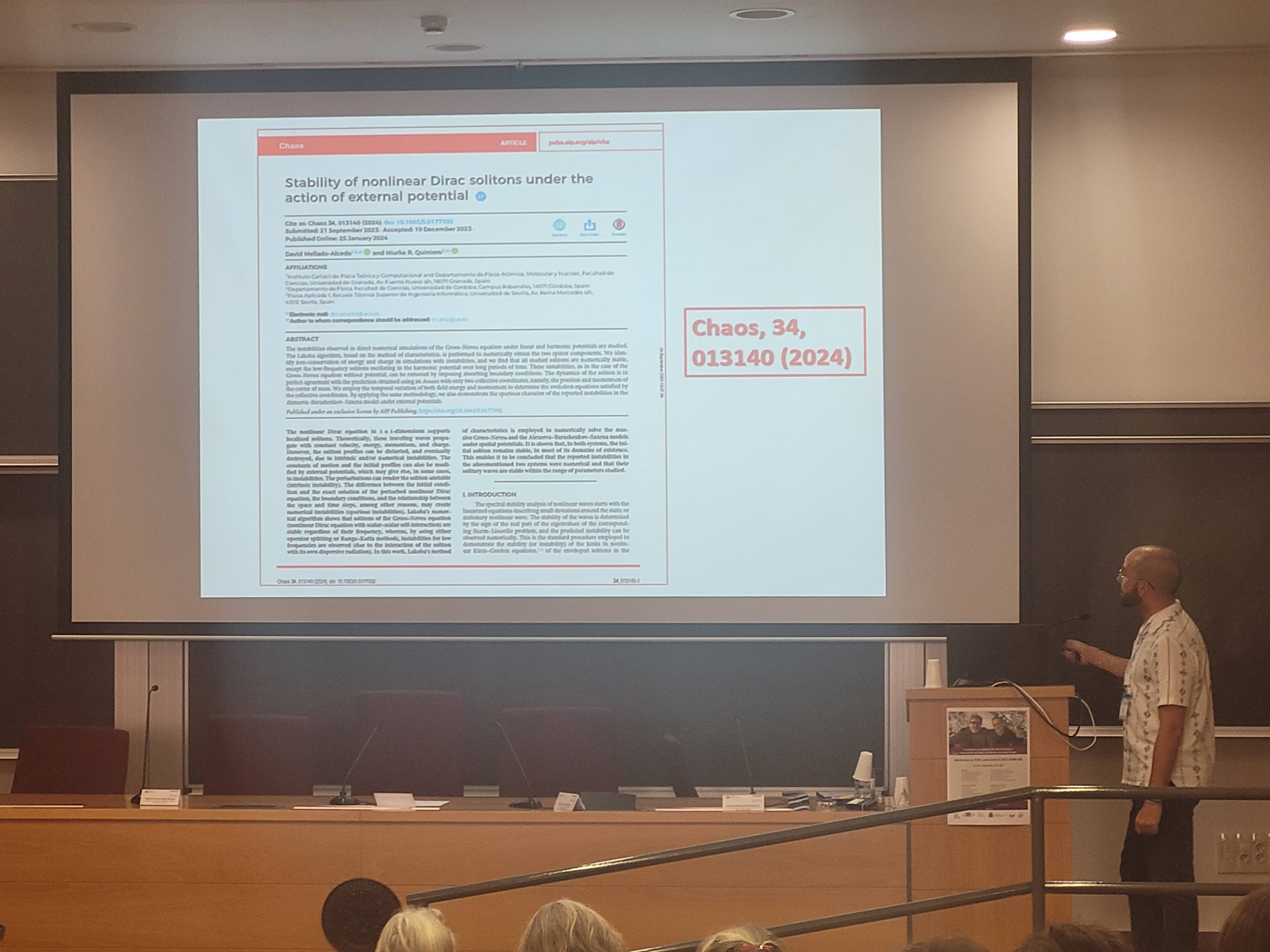 - D. Mellado-Alcedo; N.R. Quintero, 2024. Stability of nonlinear Dirac solitons under the action of external potential. CHAOS. AIP Publishing. 34, pp. 013140. Editor Picking